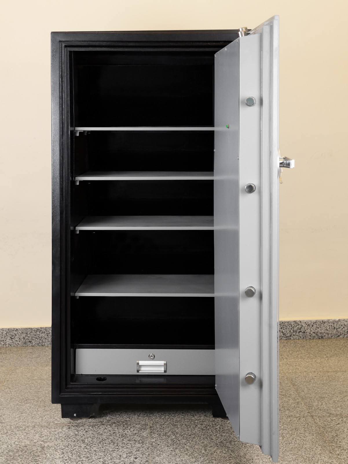 • الوصف: خزنة ضخمة تناسب المؤسسات والبنوك، سعة عالية جداً لتخزين ملفات ومستندات كثيرة.